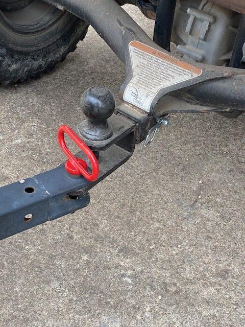 The Mule has a 1.25″ receiver mounted to the axle for towing accessories. In the past, I swapped out a ball hitch and tow ring as necessary for the task at hand, stowing both of these items in the bed of the Mule. This is entirely serviceable but not that convenient. Ever lose a lock pin in the pasture? What a waste of time.